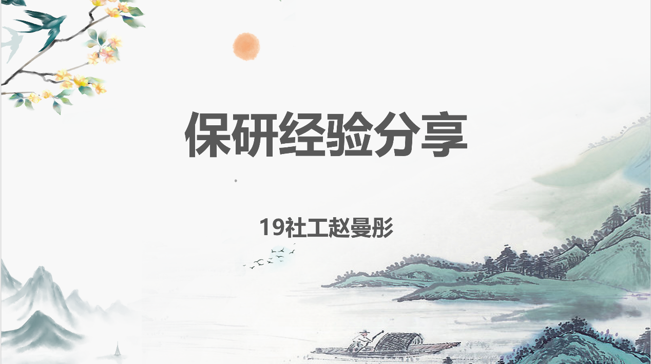 社会工作专业的赵曼彤师姐强调了绩点、外语、阅读、科研等在保研前期准备的重要性,并从回答礼仪、着装仪表、环境设备、回答思路等角度对面试给出了建议。在最后,师姐贴心地鼓励同学放平心态,积极面对保研过程中的各种挫折,学会和失败和解,接纳不够完美的自己。