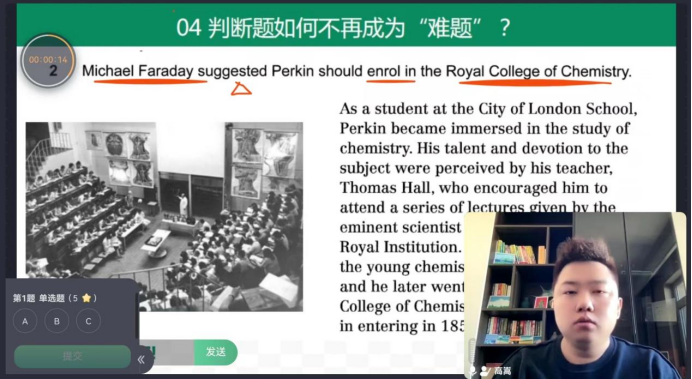 最后,高老师结合历年雅思真题,通过线上问答的形式与大家进行互动。同学们踊跃参与,紧跟老师的解题思路,积极参与问答环节。高老师多次表扬活跃的同学们,为此次讲座画上了圆满的句号。