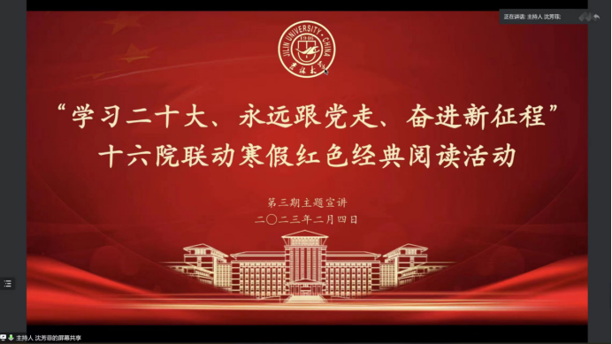2023年2月4日晚六点,寒假红色经典阅读第三期如期举行。来自商学与管理极速飞艇