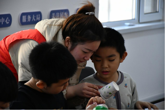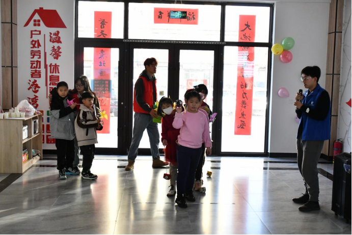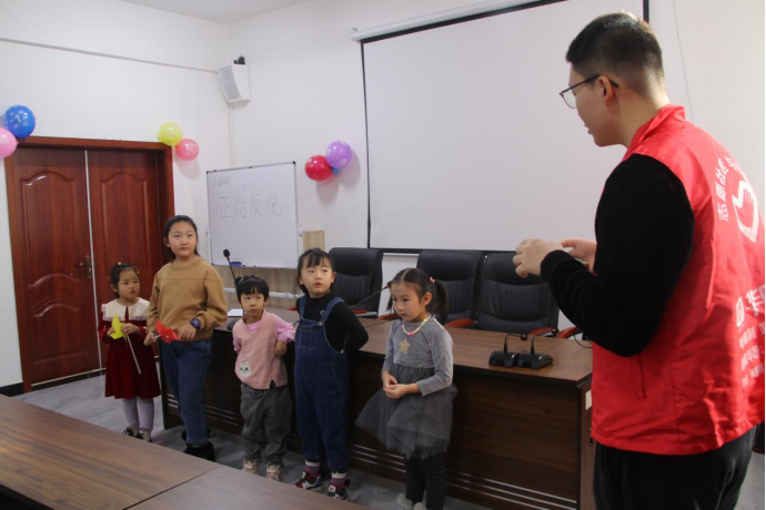 为增进相互之间了解,张特尔、周泽嘉带领小朋友们开展“你画我猜”“一碗胡辣汤”“正话反说”等各式各样的趣味游戏,拉近大家之间的距离,调动现场氛围。