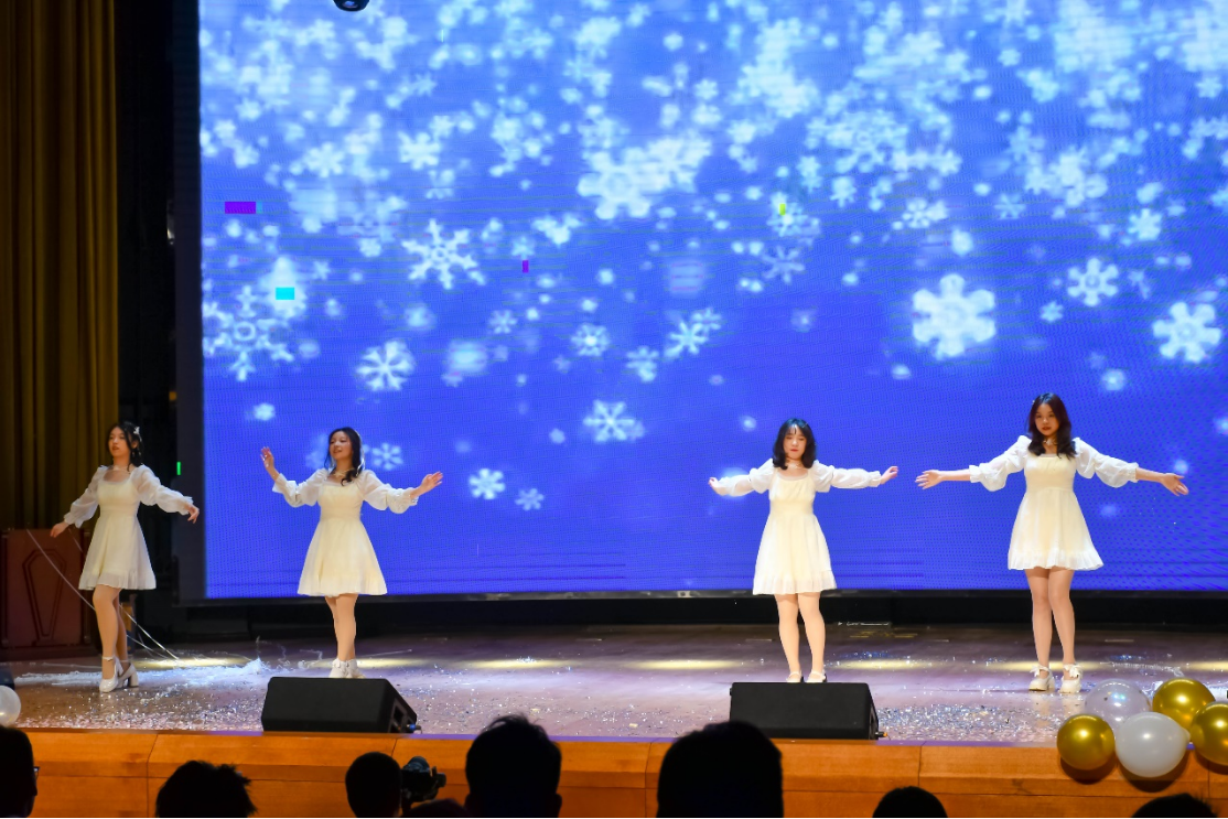 新媒体与宣传中心的同学们带来舞蹈《冬日》,悦动的旋律配合律动的舞姿,仿佛是冬日里欢快的精灵,向台下观众传递着独属于青春的洋溢热情。