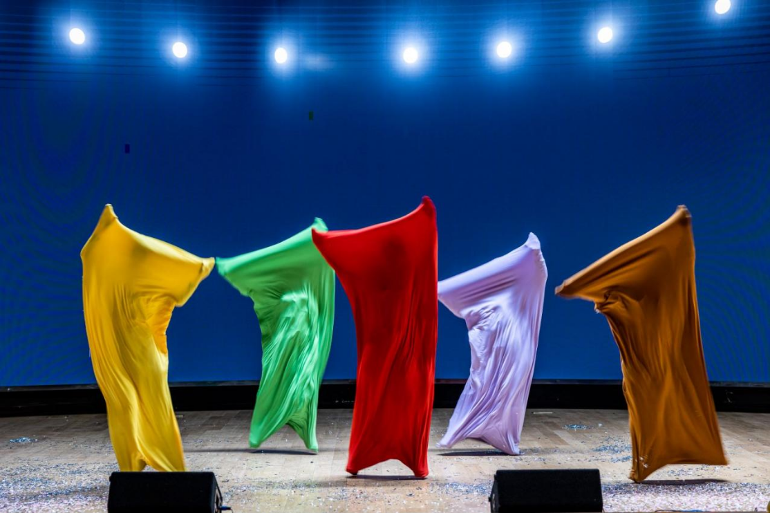 学生会的同学们则纷纷裹上被单,化身“床单舞者”,带来《床单舞》,多彩的被套就像多姿多彩的大学生活,点缀着观众的心情。热情欢脱的舞姿把现场气氛推向高潮。