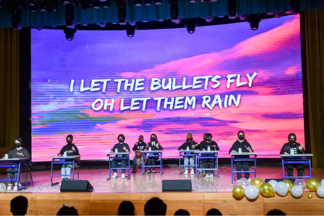 随着白雪初融,黄柳依依,我们进入了“醒春”篇章。2022级2班和5班的同学们拿起了日常生活中最常见的杯子,叮叮咚咚,敲出了斗志昂扬的《Believer》;整齐划一,欢快悦动的旋律带动着台下的同学们齐声合唱。