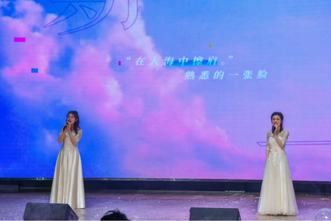 “菀菀黄柳丝,濛濛杂花垂”,春天自然有独属于哲社人的浪漫。当《情歌》的前奏逐渐响起,来自2022级4班的赵家仪、张羽青同学将怦然心动化成歌声传情达意。歌声中,她们唱着青春的美好,向观众们缓缓诉说。