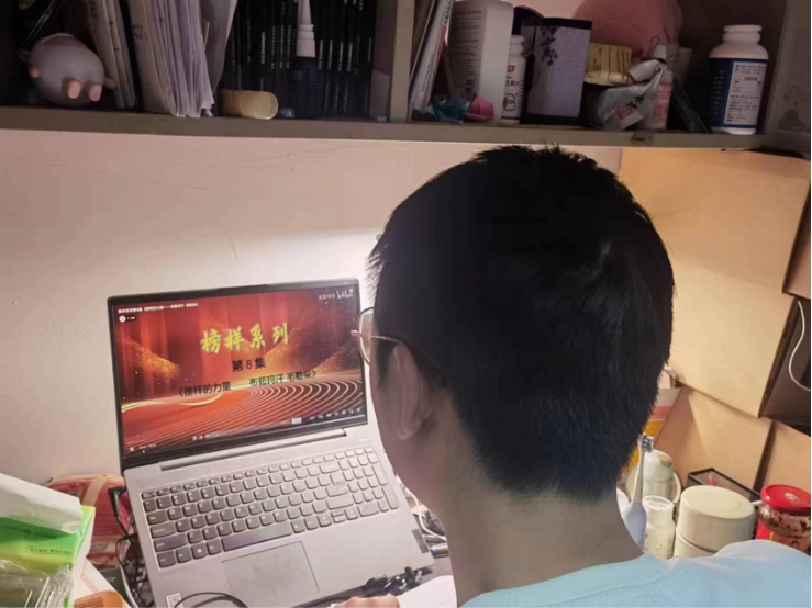 团学组织主要成员,通过线上线下相结合的方式收听收看由中央组织部、中央学习贯彻习近平新时代中国特色社会主义思想主题教育领导小组办公室和中央广播电视总台联合制作的《榜样8》专题节目,并开展感想交流活动。