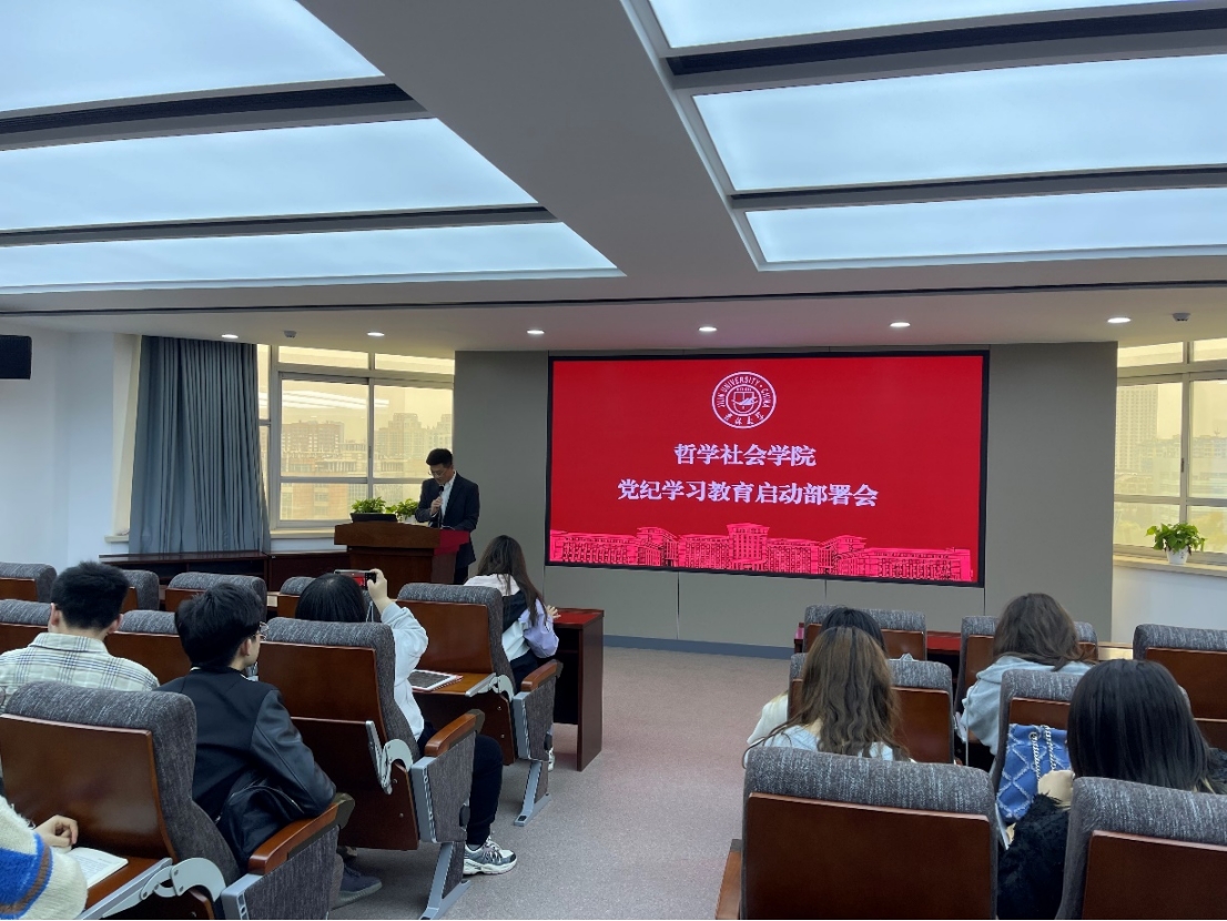 党委副书记兼副院长、哲学系专业本科生党支部书记刘培强老师在东荣大厦904会议室主持召开本支部党纪学习教育启动部署会议。