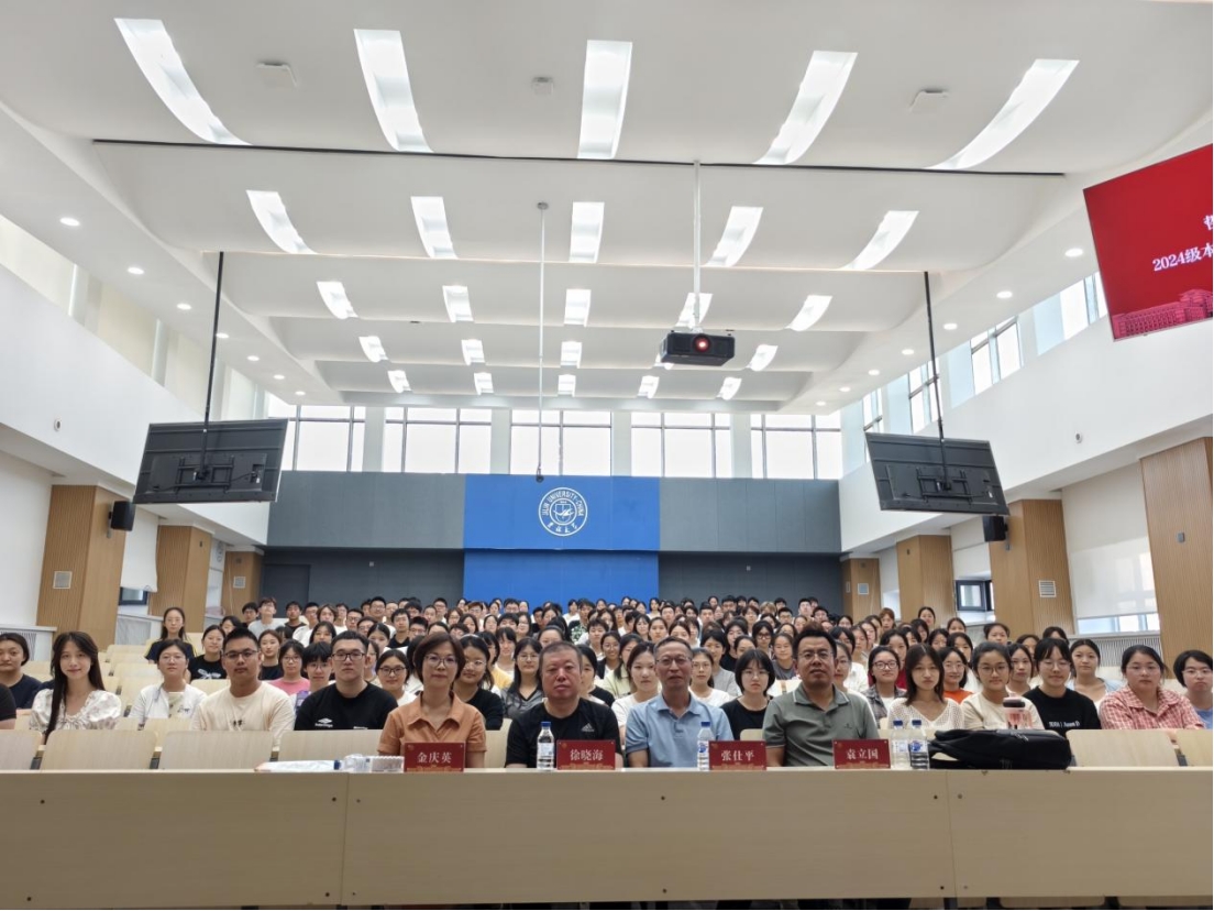 在逸夫教学楼第十四阶梯教室,组织开展2024级本科新生入学专业教育。本次会议由2024级本科新生辅导员张鑫鹏老师主持,各系教师代表、全体2024级本科新生参加会议。