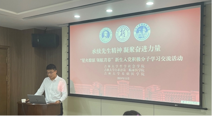 活动最后,张鑫鹏老师在主持发言中表示,高清海先生、白求恩先生都是我们的榜样和先进典型,作为入党积极分子,传承学习先生们伟大的精神、崇高的品格、卓越的思想,是一项必修课、更是一项基本功。希望同学们能够认真消化学习本次交流学习的内容,以先生为榜样,努力做到想到前头、走在前列,结合实际、干到实处,努力向一名共产党员的标准不断靠近。