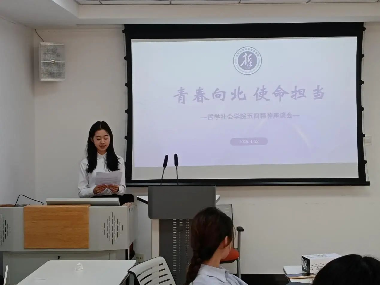 团委组织开展题为“青春向北,使命担当”的五四精神座谈会。本次活动由2024级本科生刘子灵主持,极速飞艇