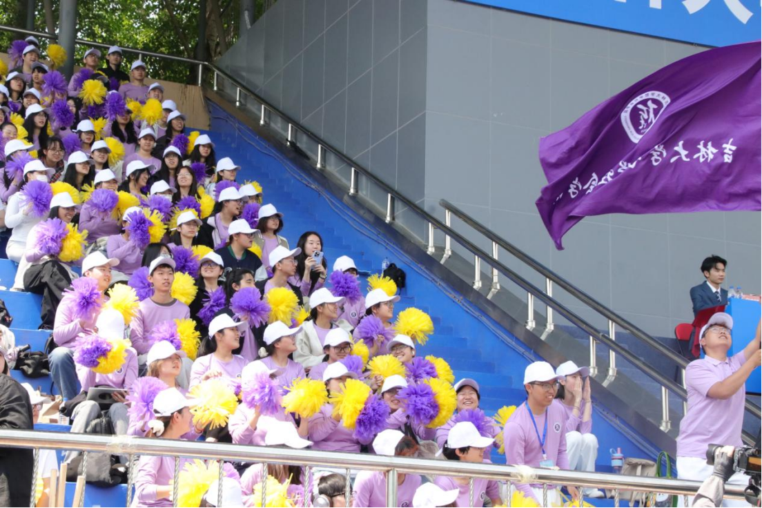 为每一位拼搏的运动健儿击鼓助威,为每一个精彩的胜利瞬间呐喊喝彩,观众席的同学们舞动着手中的花球,呼喊着嘹亮的口号,展现出哲社井井有条的现场秩序与昂扬向上的精神风貌。
