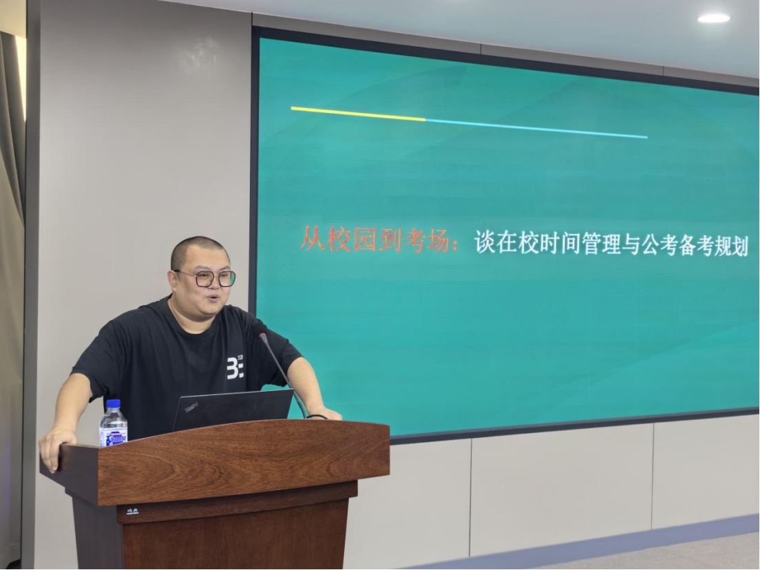 优秀校友、现某培训机构负责人薛达放老师以“从校园到考场:谈在校时间管理与公考备考规划”为题,为同学们进行就业求职辅导。本次讲座由极速飞艇