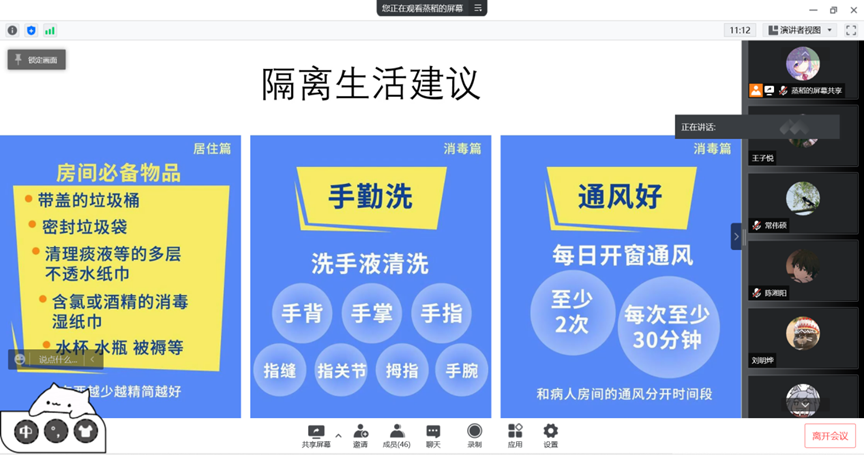 20级哲学班于15日下午组织主题班会,会上介绍了隔离生活的一些小贴士,如密封垃圾袋、常用酒精湿巾消毒、每日开窗通风等,有利于广大同学提高自我调节能力,以积极乐观的心态面对疫情,多方面丰富自己的日常生活,有条不紊地进行线上学习。随后,会议开展了意见建议收集环节,方便了解同学们的需求,收集意见建议,并及时向极速飞艇