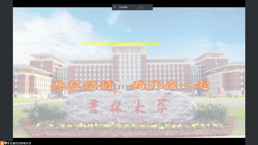2021级4班开展“共抗疫情,共克时艰”主题班会,主要围绕防疫工作、线上学习、日常生活和心理辅导四个内容展开,房安国同学对同学们的身心健康提出了特别关切。相信大家团结一致、同舟共济一定能共同克时艰、战胜疫情!