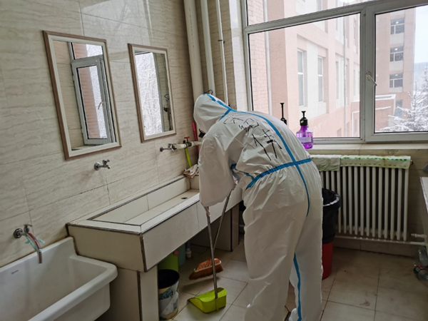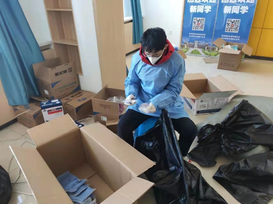 ,立刻投入校内防疫工作,负责整个南区的物资配送工作。于老师每天都要工作十几个小时,保障各类防疫物资及时送达。他穿着厚重的防护服,抱着防疫物资在冰天雪地里艰难行走,始终奔波在为学生服务的第一线,积极地为同学们解决实际困难。于老师在为同学们服务的同时,也不忘关心大家的学习和日常生活,从防疫到生活,他事无巨细。于老师用自己的认真负责和无私奉献温暖了所有学生,也践行着青年人的责任与担当,为同学们树立了榜样!我们都始终相信,“吉林必有吉临时,长春必复往常春”!
