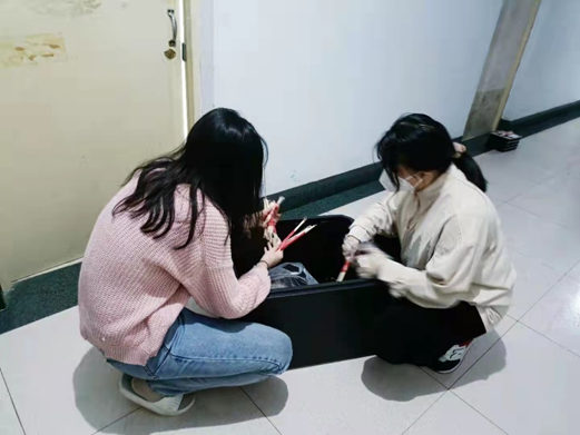 一栋宿舍楼,六个楼层,450多个宿舍,1300多份餐食,如此巨大的工作量让女孩们的身体逐渐吃不消了,南四的保洁阿姨为志愿者们带来了宝藏小推车,送餐送水的效率大大提高!没有一个冬天不可跨越,没有一个春天不会来临,只要我们不言放弃,共克时艰,万千灯火汇聚,必定能点亮漫漫长夜!