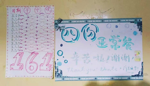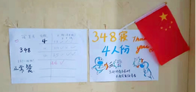 为了答谢志愿者的辛苦劳动和无私付出,南四同学们也纷纷画出了可爱的送餐表张贴在宿舍门口,温暖了正在奋斗的志愿者,希望的嫩芽正在悄然萌发。