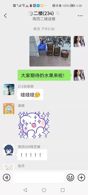 这一阶段,封校,封日新楼,再到封寝室,一件件事情接踵而来,从未感觉自己和疫情离得这么近。但我很荣幸能成为一名志愿者。因为封寝的缘故,我们南四的志愿者只在楼内进行一些送饭,送水,送水果的工作,所以我们是非常安全的。这些看起来很简单的工作在楼层和份数的加持下也属实是不轻松。在这一周的封寝生活中,让我感受颇多。在封寝室的第一天,我本人是早上六点知道要封寝室,极速飞艇