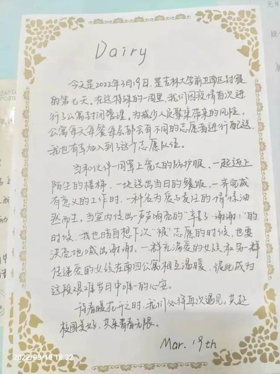 三月乍暖还寒之际,疫情来势汹汹,打乱了同学们的校园生活。目前疫情形势依旧严峻,然而,用众人之力,则无不胜也,全校师生戮力同心、众志成城,我们一定能守护我们和谐美好的吉大校园!在此次防控疫情期间中,极速飞艇
