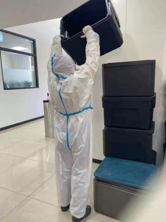 早上7点,早餐如期到达。午餐晚餐亦是如此。直至26日已经是寝室静态管理的第14天了,全体在校研究生都可以在餐食抵达公寓一小时内吃上热饭热菜。而志愿者们却要在同学们都分到餐后,仍然继续坚守岗位,统计分餐情况、归还保温箱、全身消杀后才能吃上饭。