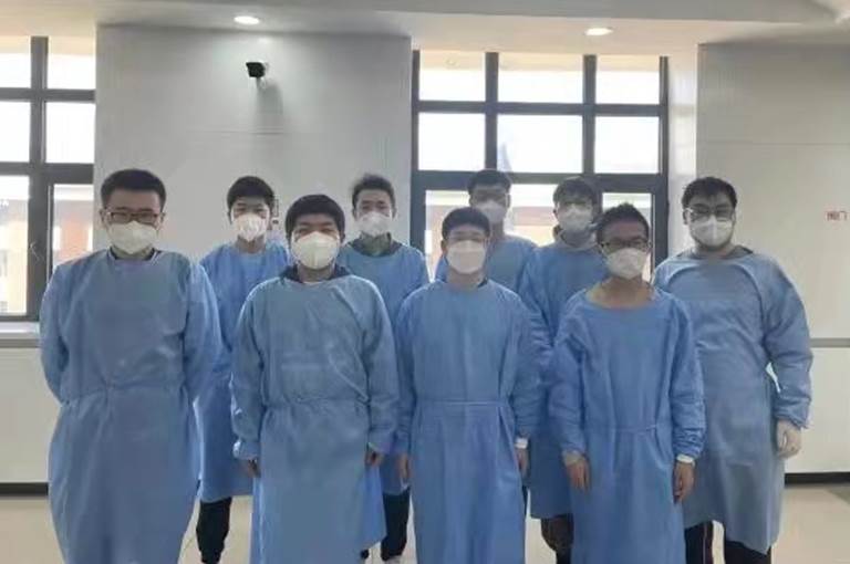 研究生12人,主要由韩涛泽、程汉和我三位志愿者同学负责。面对突如其来的疫情,共产党员就是要冲锋在前,发挥先锋模范作用,积极地为同学们服务。在疫情中,防疫志愿者必然会承担更高的风险,我们出于共产党员的使命与担当,没有顾虑太多,投入到志愿者的队伍。韩涛泽同学身穿“大白”上门检测核酸,程汉同学不厌其烦地收集核酸自检试剂,我主要负责在各个寝室间穿梭配送盒饭。我认为,疫情封校不仅是一场挑战,同时更是一次宝贵的经历。只要心中只有同舟共济、共克时艰的信心与决心,我们一定会战胜疫情,“团结就是力量”,这样的教诲永远不会过时。
