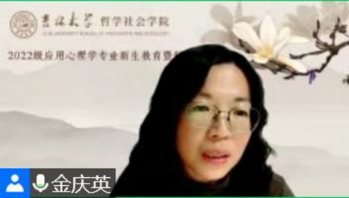 最后,金庆英老师总结到,虽然疫情暂时性地让师生相隔,但大学四年来日方长,希望同学们同老师们一道遨游心理学的知识海洋,感受心理学的学科魅力。同时祝愿同学们在人生新的起点放飞梦想、辛勤耕耘、学有所成!