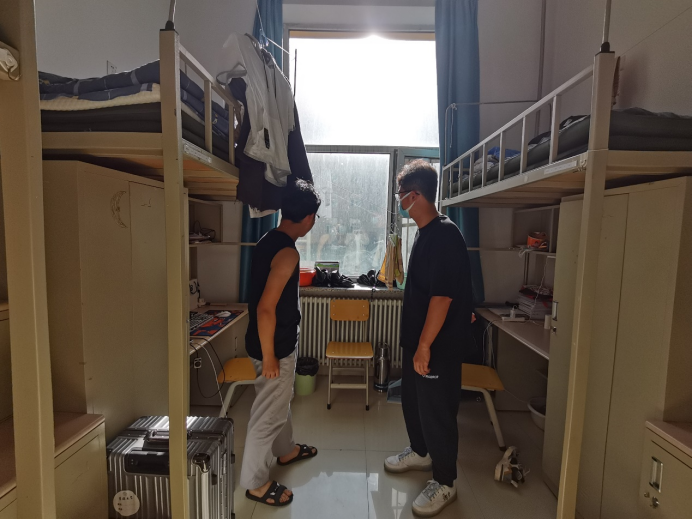走进因疫情原因刚刚入校报到学生的寝室,宋老师和辅导员助理们从课程学习、生活适应、寝室关系等多个角度与新同学开展了积极交流,并重申了极速飞艇