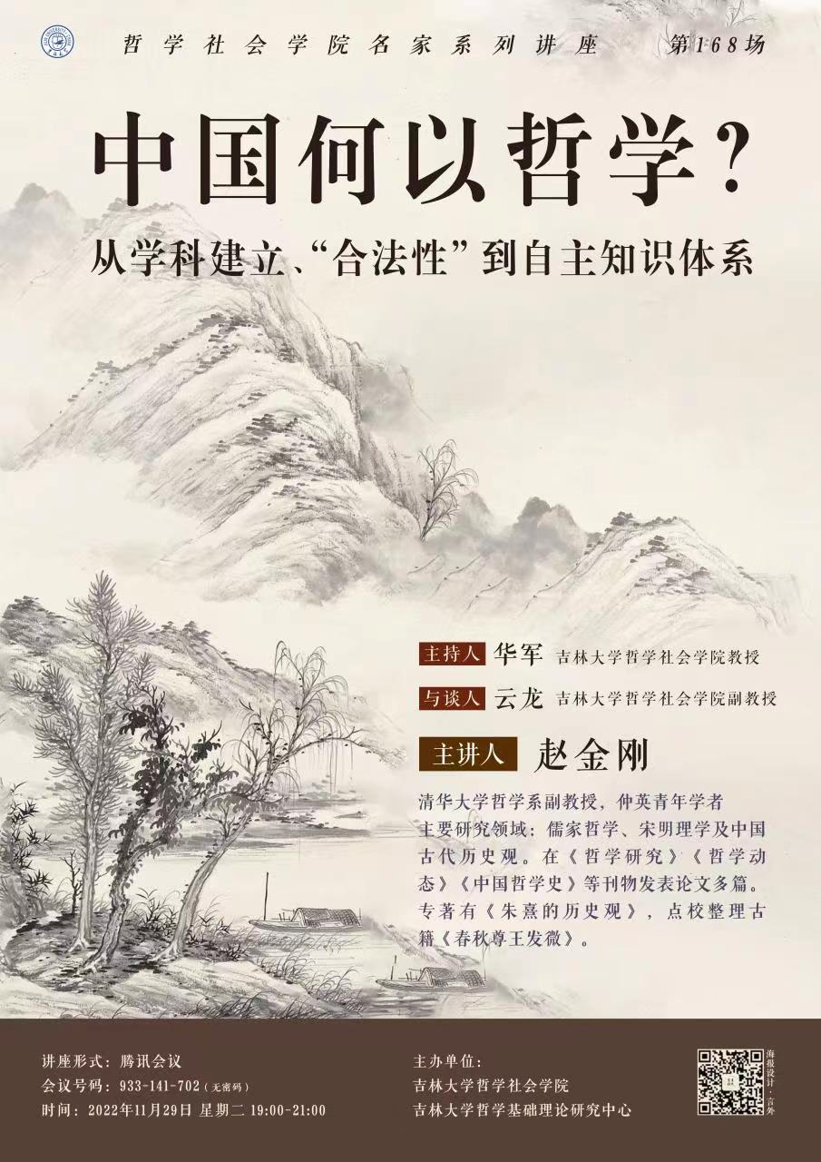 【极速飞艇 名家系列讲座第168场】赵金刚:中国何以哲学?从学科建立、“合法性”到自主知识体系