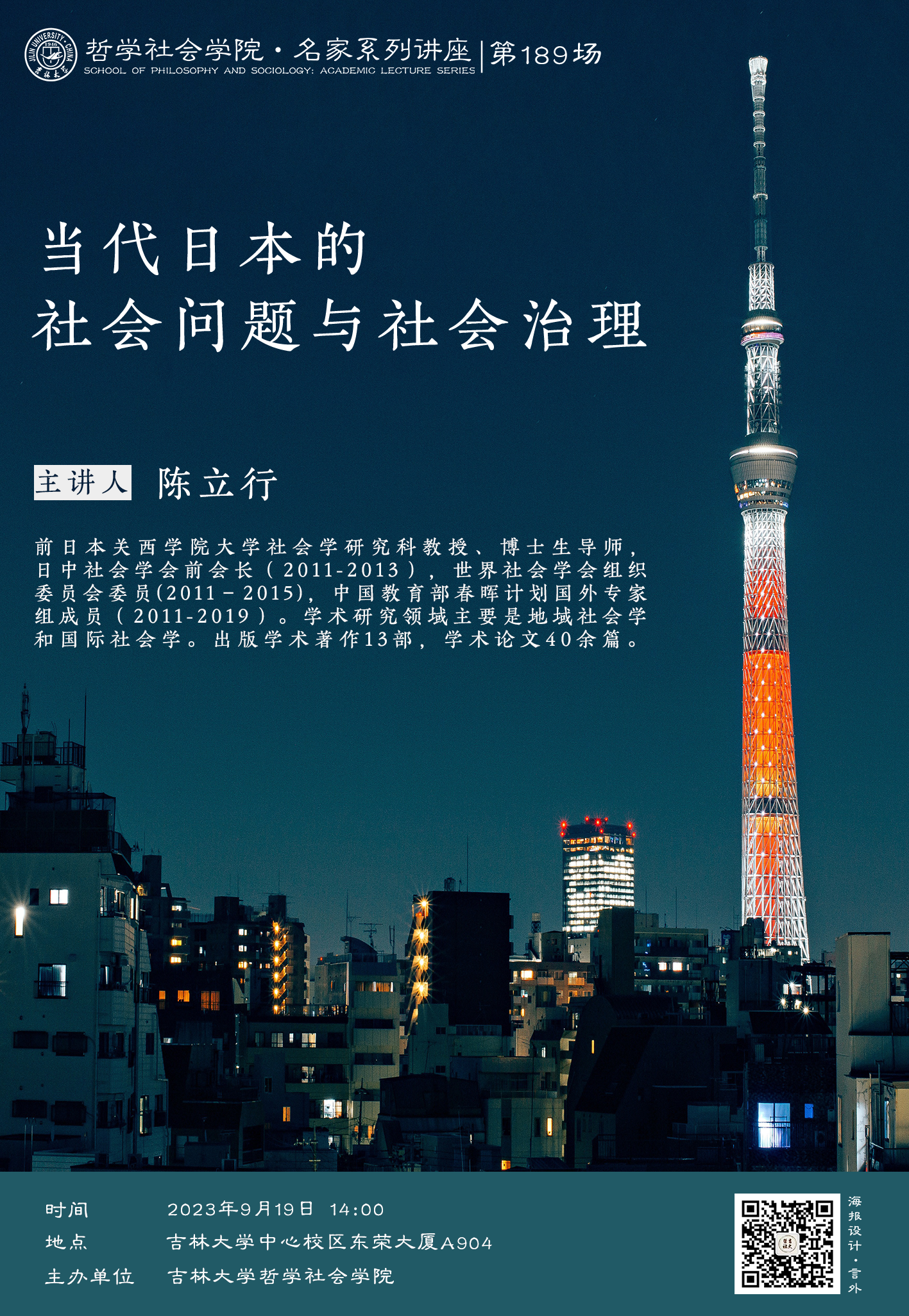 【极速飞艇 名家系列讲座第189场】陈立行:当代日本的社会问题与社会治理