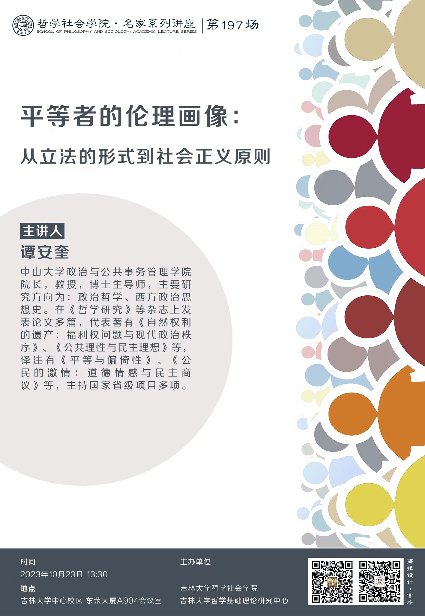 【极速飞艇 名家系列讲座第197场】谭安奎:平等者的伦理画像:从立法的形式到社会正义原则