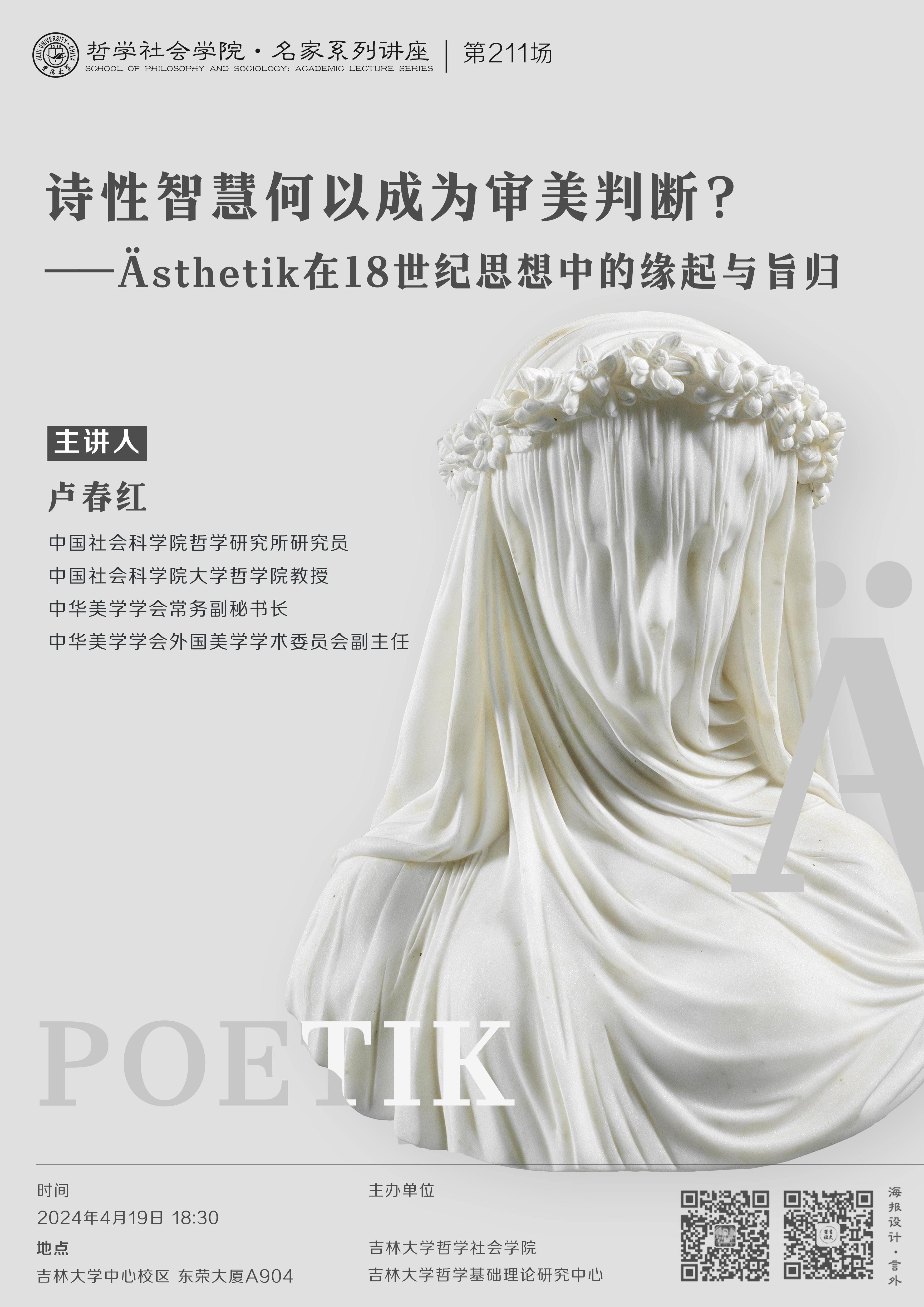 【极速飞艇 名家系列讲座第211场】卢春红:诗性智慧何以成为审美判断?——Ästhetik在18世纪思想中的缘起与旨归