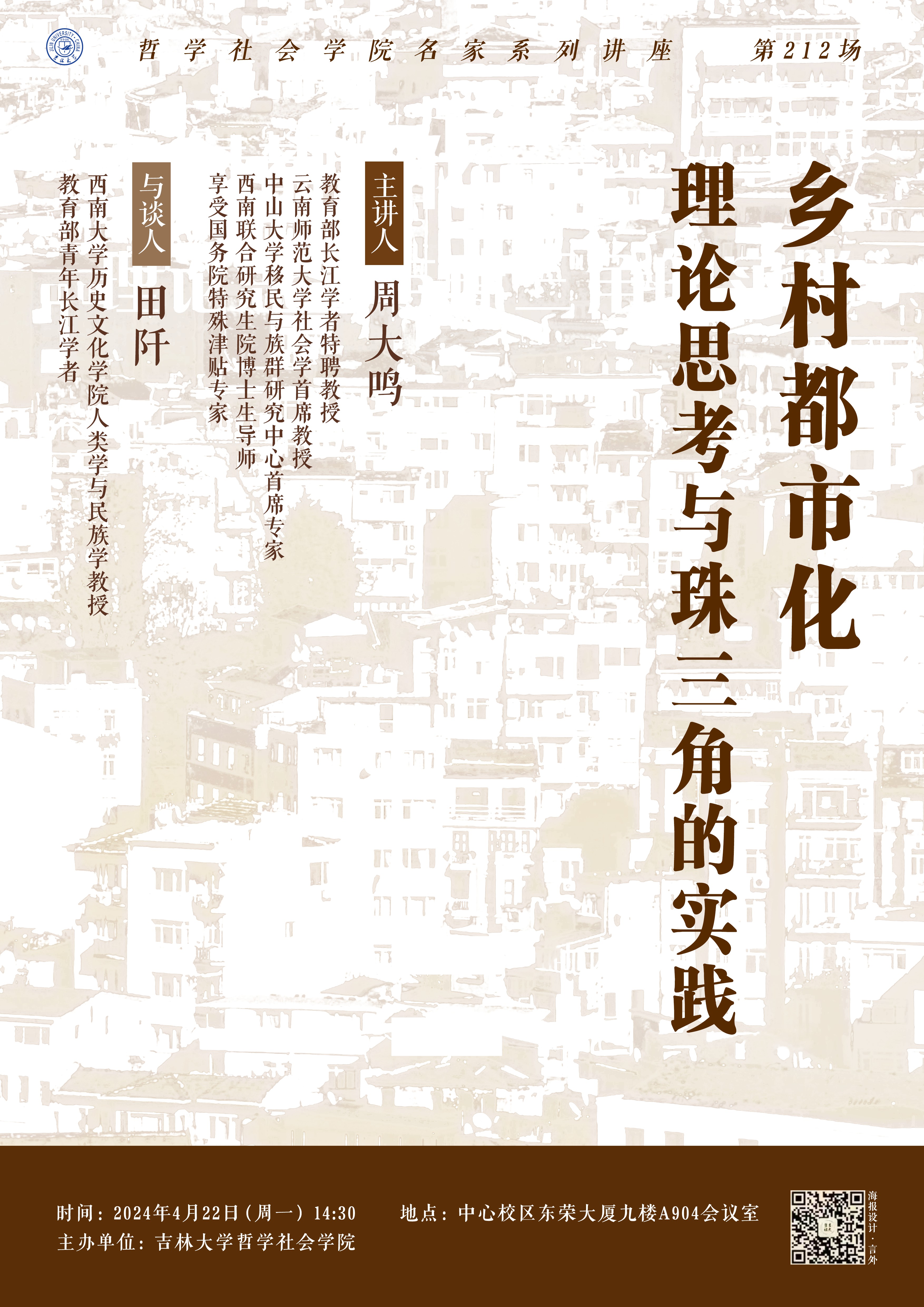 【极速飞艇 名家系列讲座第212场】周大鸣:乡村都市化:理论思考与珠三角的实践