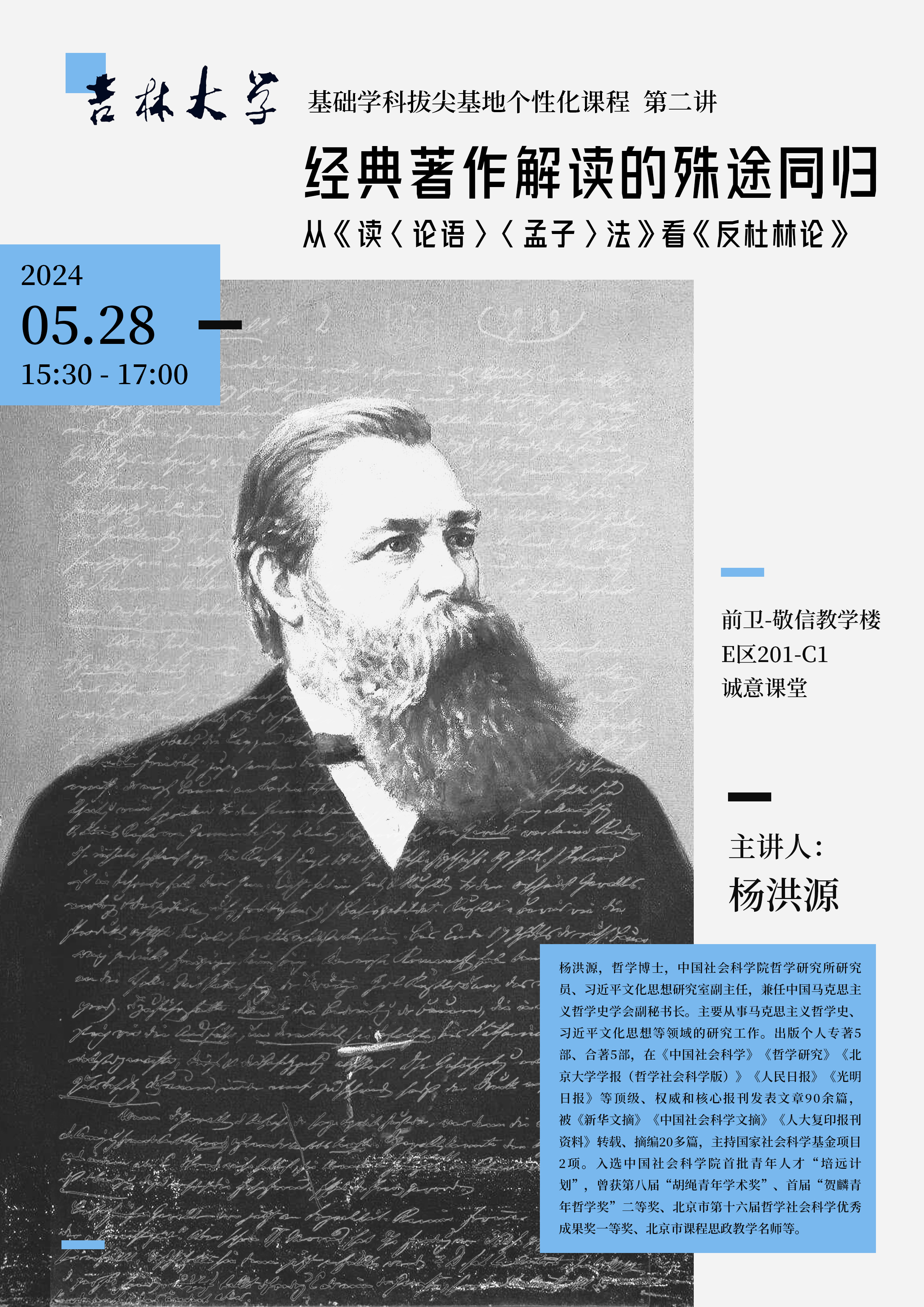 【极速飞艇 基础学科拔尖基地个性化课程第三讲】杨洪源:经典著作解读的殊途同归——从《读〈论语〉〈孟子〉法》看《反杜林论》
