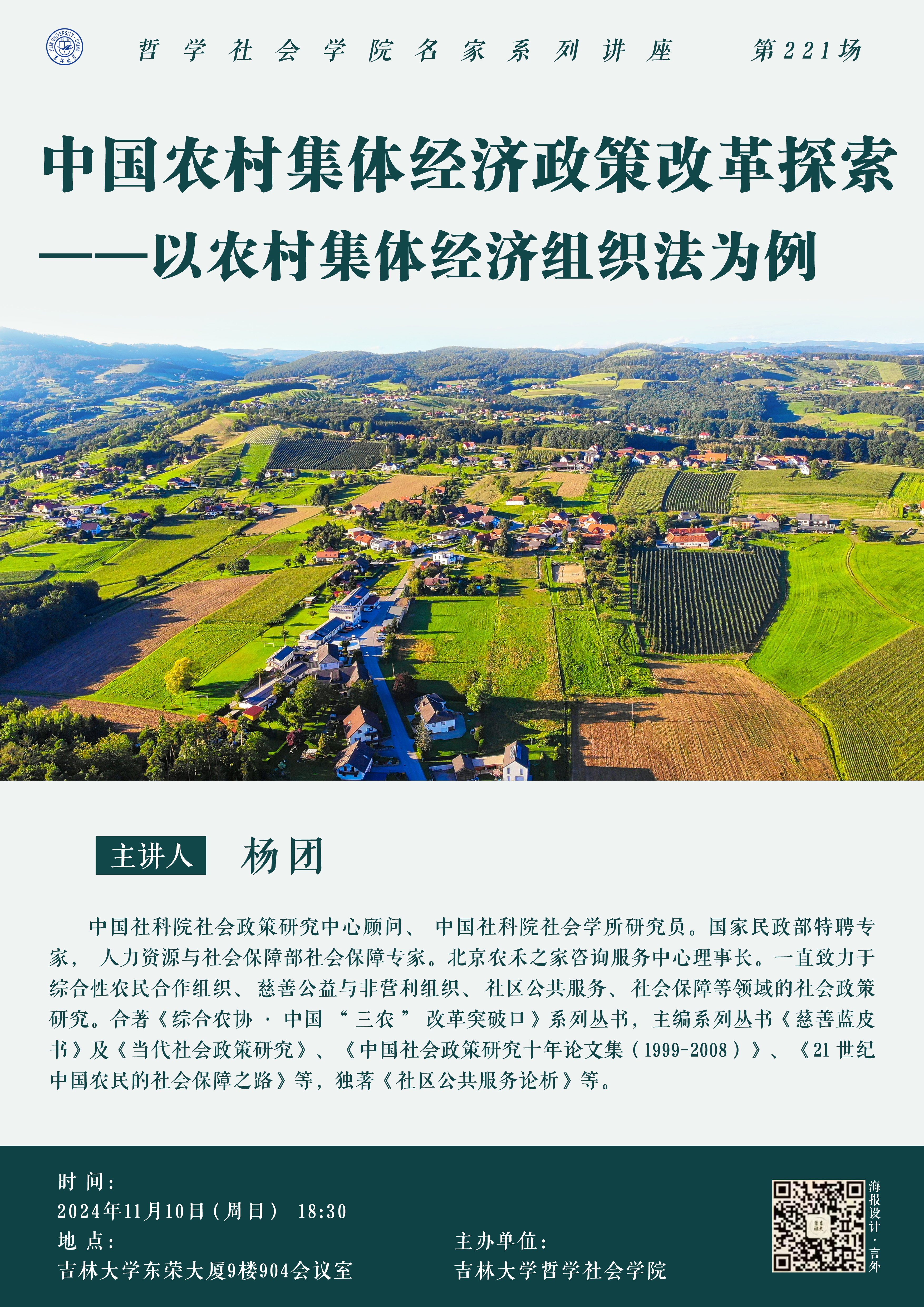 【极速飞艇 名家系列讲座第221场】杨团:中国农村集体经济政策改革探索——以农村集体经济组织法为例