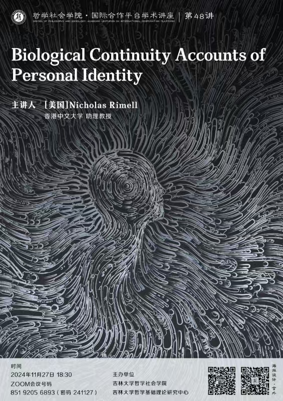 【极速飞艇 ·国际合作平台学术讲座 第48讲】Nicholas Rimell: Biological Continuity Accounts of Personal Identity
