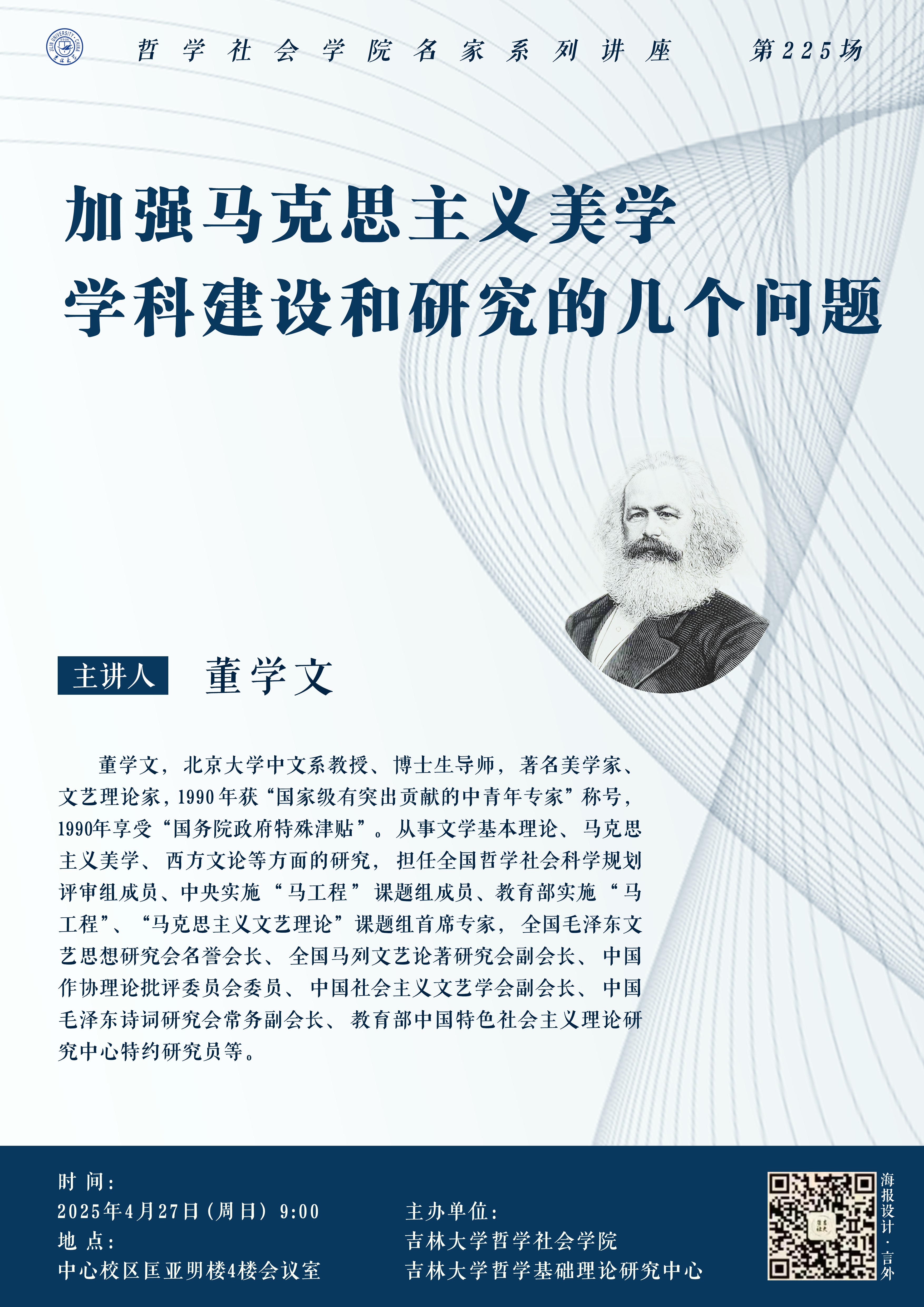 【极速飞艇 名家系列讲座第225场】董学文:加强马克思主义美学学科建设和研究的几个问题