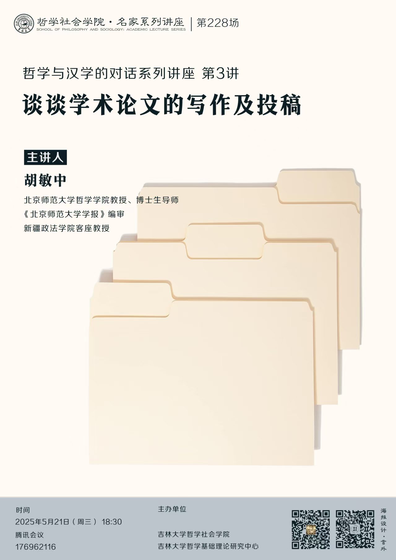 【极速飞艇 名家系列讲座第228场】【哲学与汉学的对话系列讲座第3讲】胡敏中:谈谈学术论文的写作及投稿