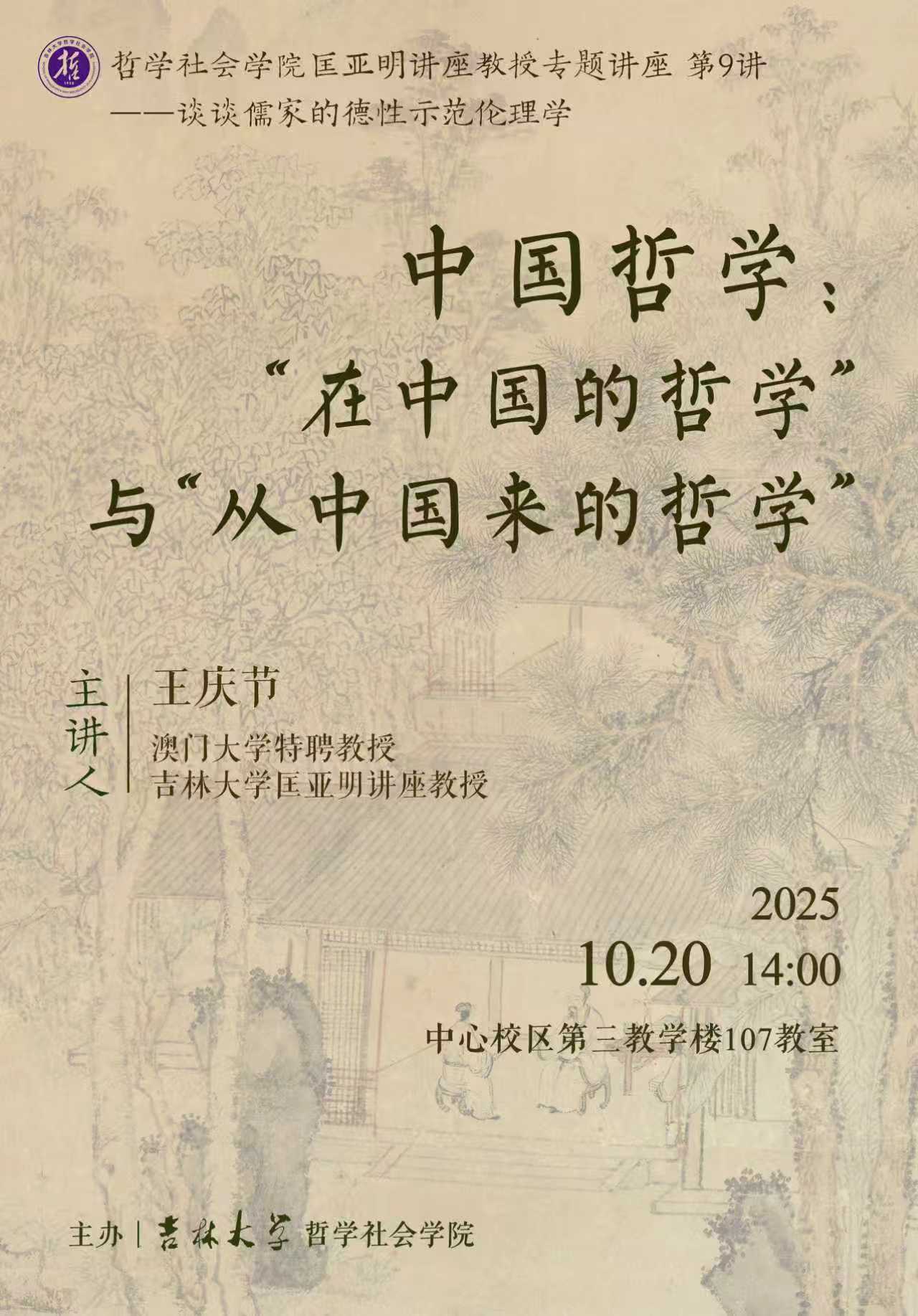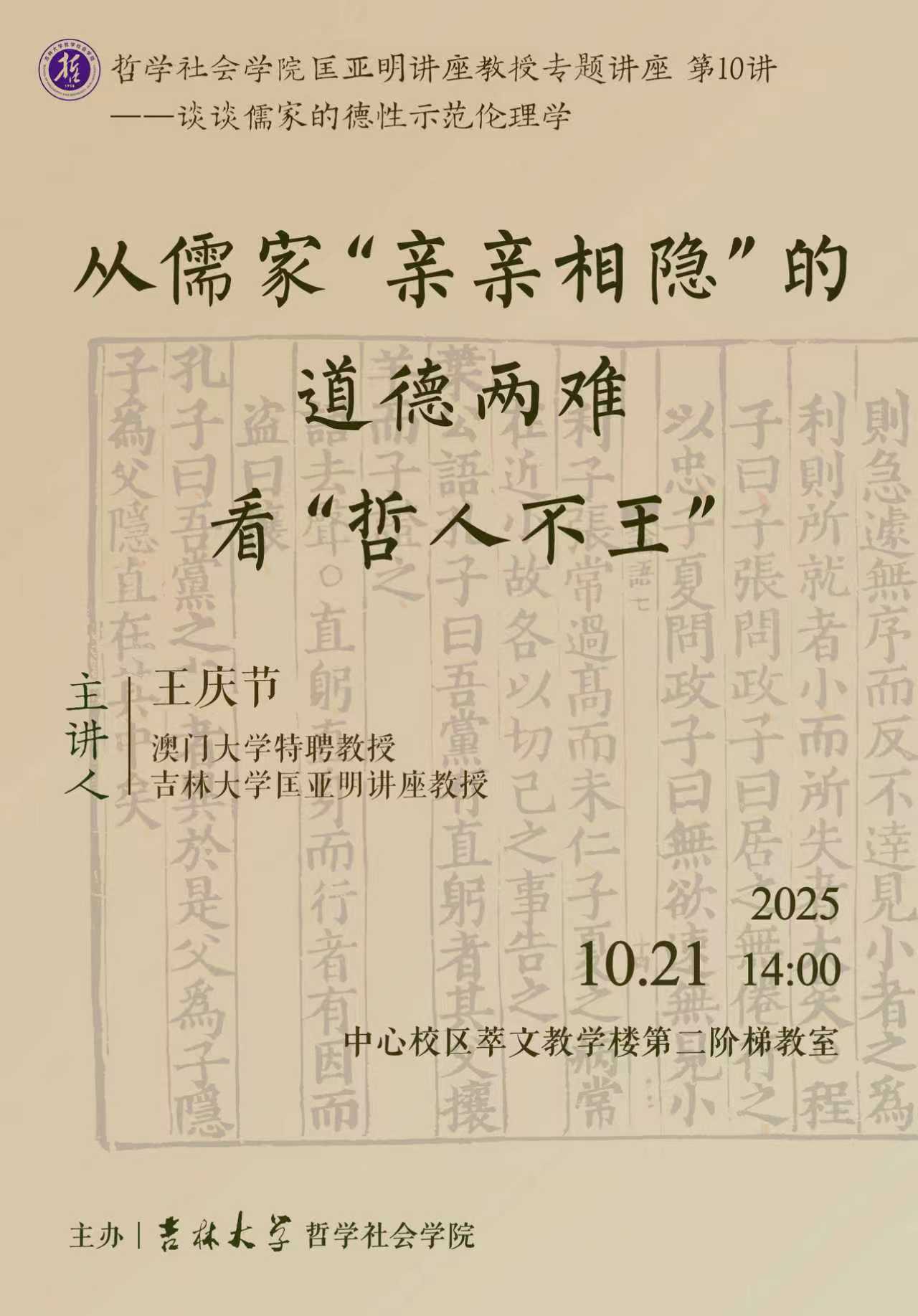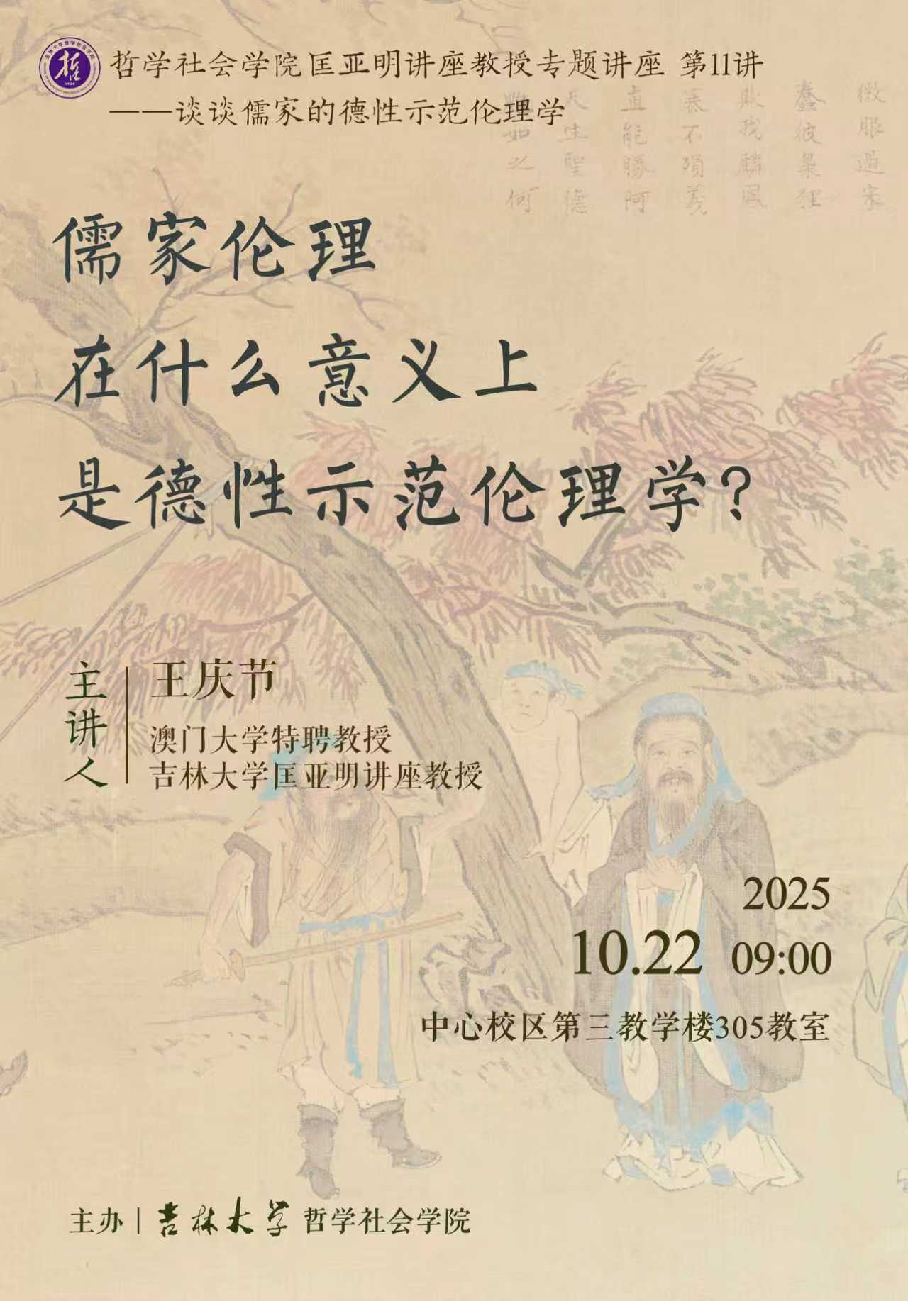 【极速飞艇 匡亚明讲座教授专题讲座第9-11讲】王庆节: 谈谈儒家的德性示范伦理学