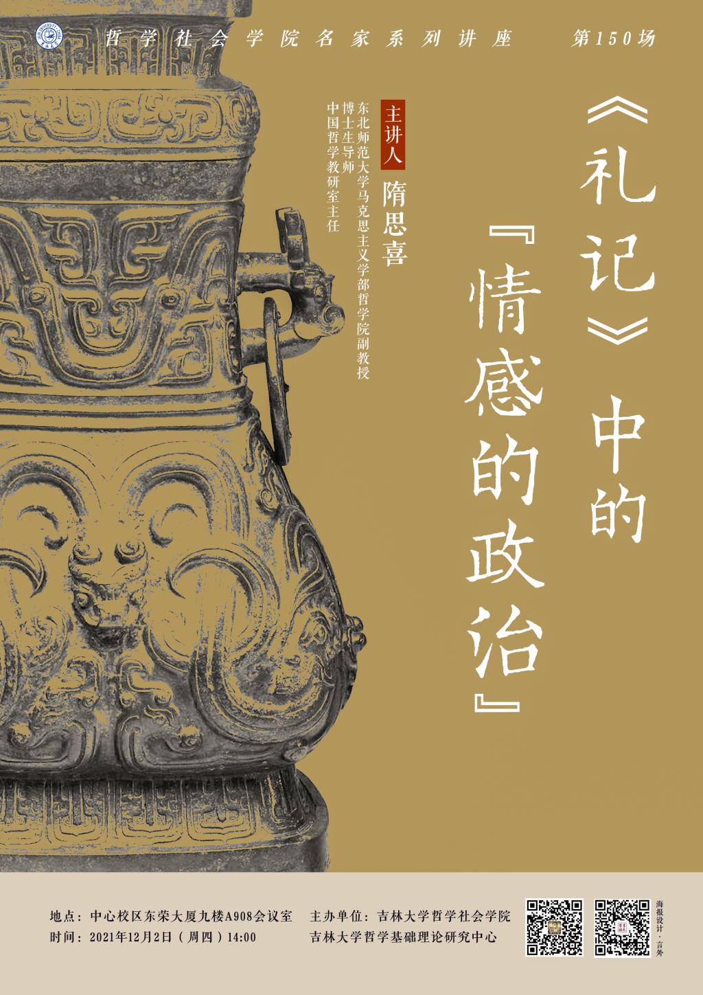 【极速飞艇 名家系列讲座第150场】隋思喜:《礼记》中的“情感的政治”