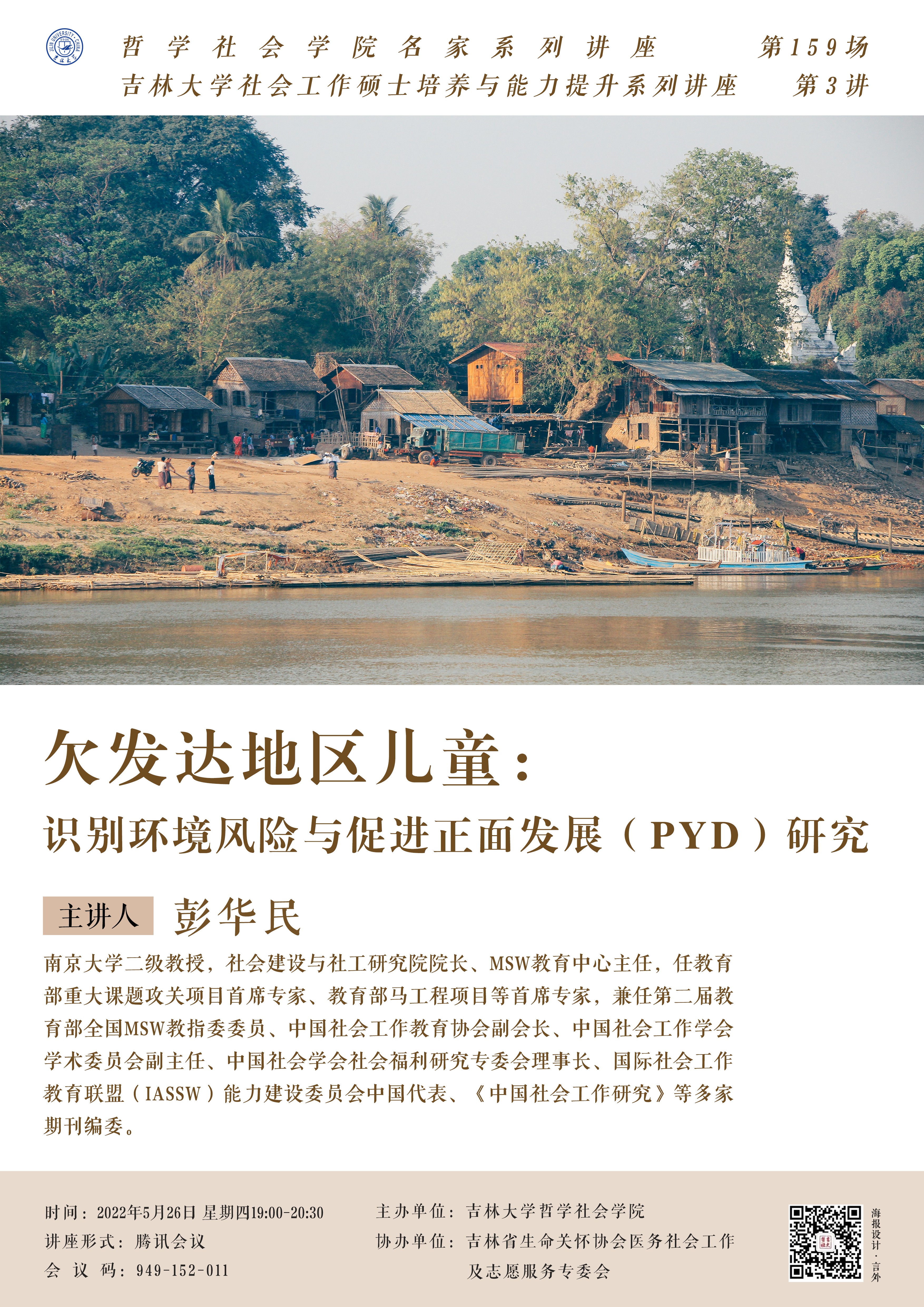 【极速飞艇 名家系列讲座第159场】【极速飞艇 社会工作硕士培养与能力提升系列讲座第3讲】彭华民:欠发达地区儿童:识别环境风险与促进正面发展(PYD)研究