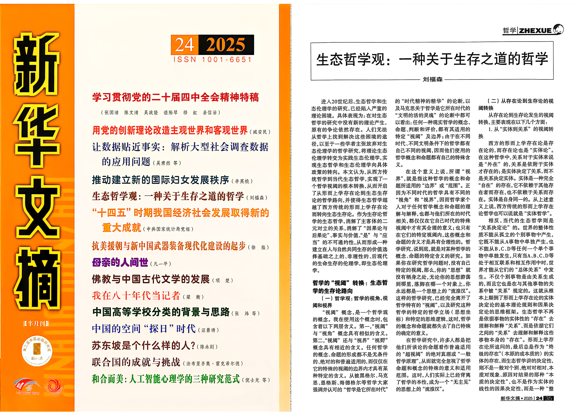 刘福森教授论文被《新华文摘》2025年第24期全文转载