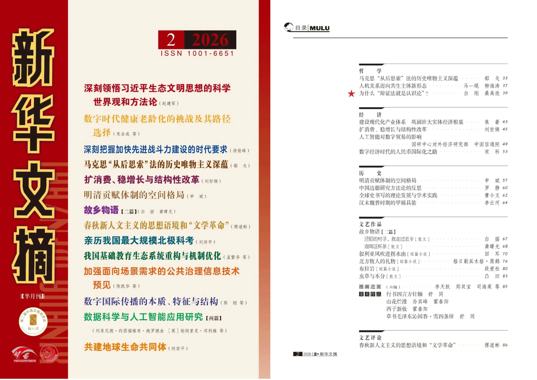 白刚教授论文被《新华文摘》2026年第2期全文转载