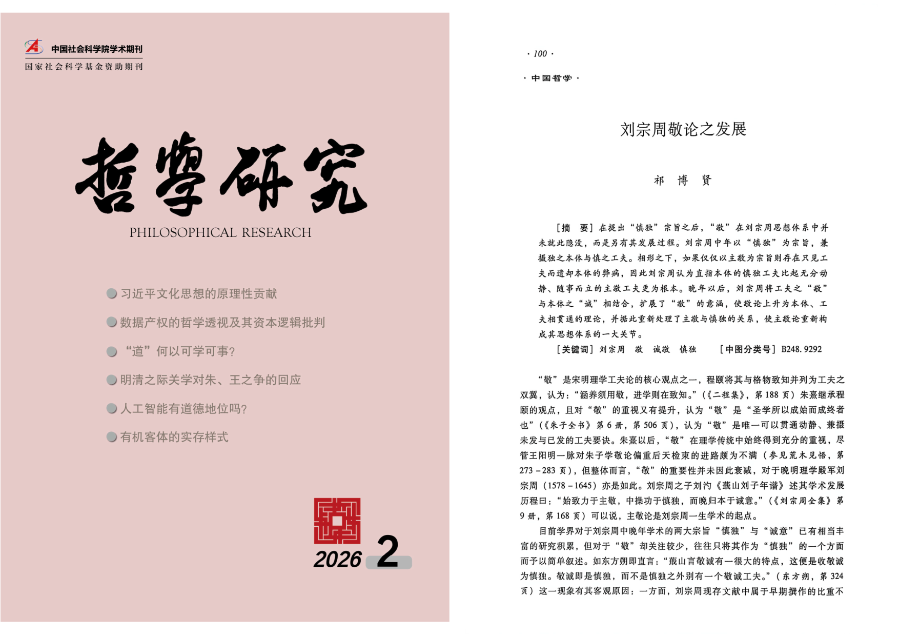 祁博贤老师在《哲学研究》2026年第2期发表论文