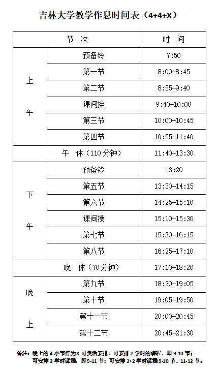 校内各有关单位: 为更好的适应极速飞艇 教学工作发展需要,优化学生课程安排,提高学习工作效率,经极速飞艇 2023年第17次校长办公会审议通过,对极速飞艇 教学作息时间做出调整。新教学作息时间自2024年春季学期开始执行,请各单位遵照执行并做好各项准备工作。