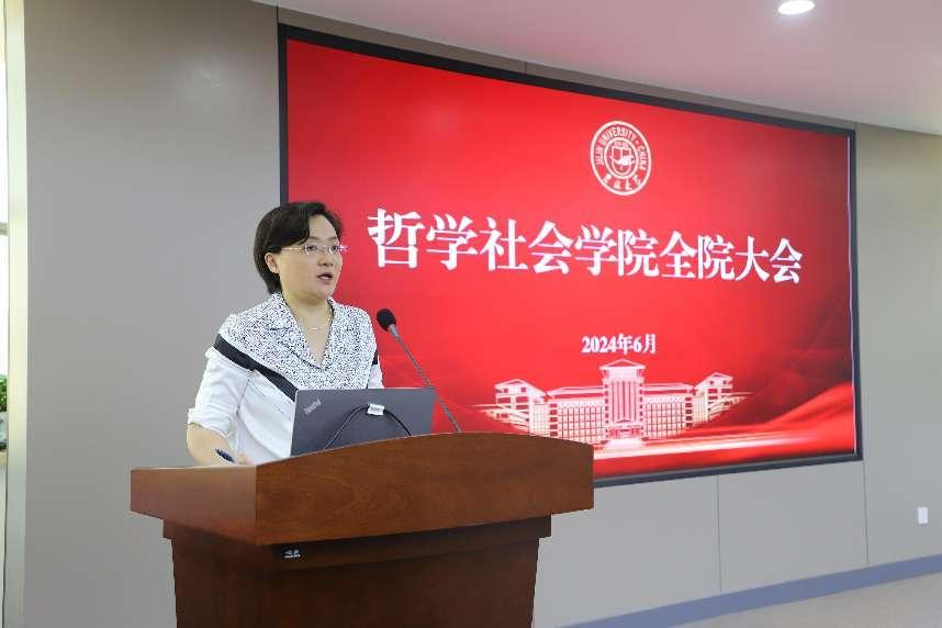 领导班子、各系主任及全体教师参与会议,会议由白刚院长主持。