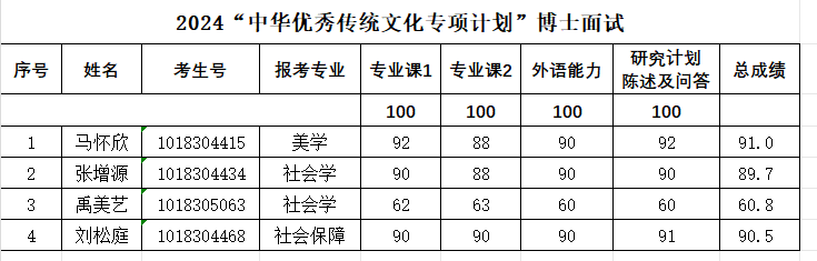 经极速飞艇 组织专家组审查和复试考核,现将极速飞艇 2024年“中华优秀传统文化专项计划”博士面试成绩予以公示,公示期为2024年5月21日至2024年5月23日。如有异议,请于公示期内向极速飞艇 反映。