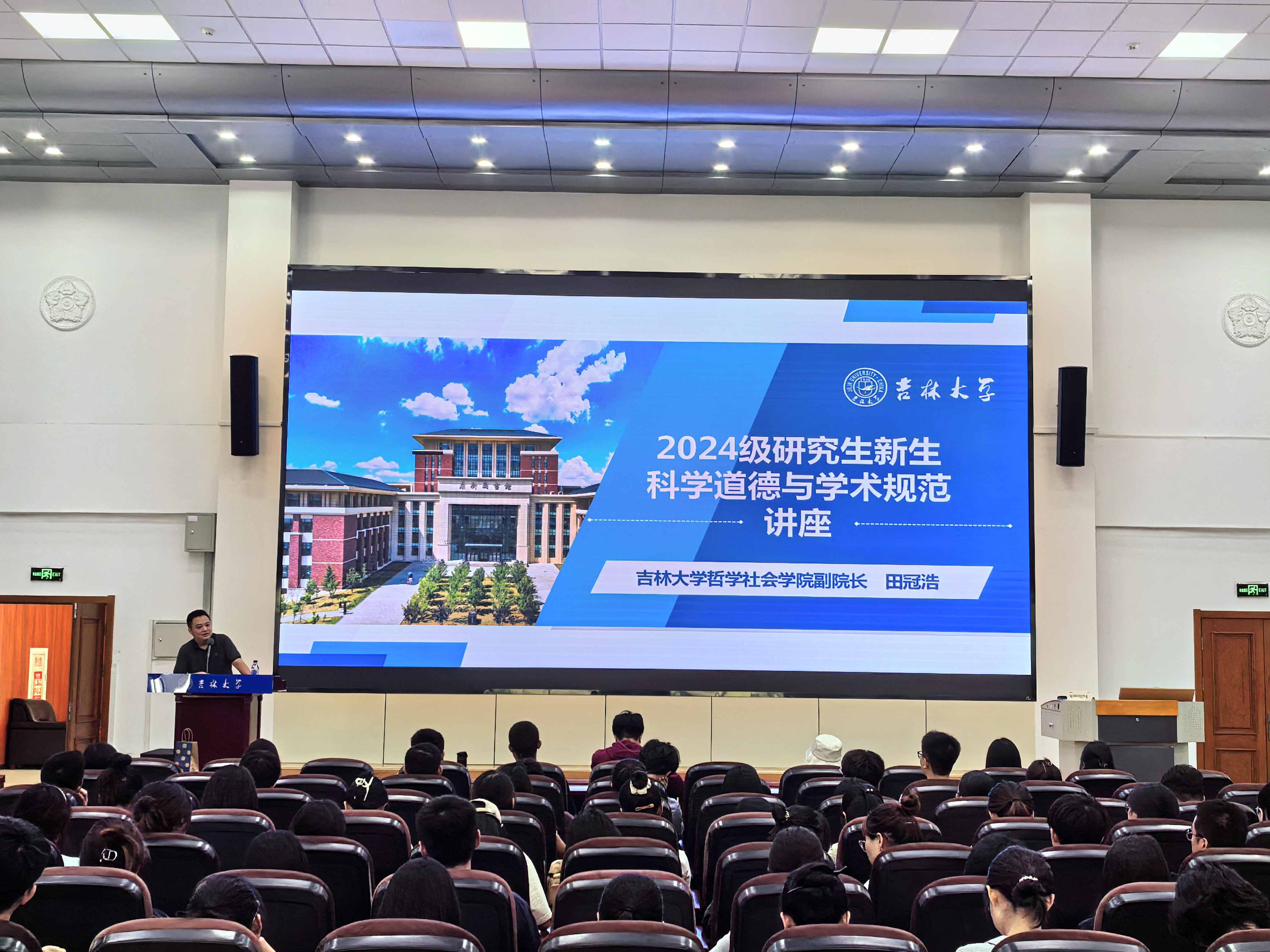 副院长、博士生导师田冠浩教授主讲,研究生辅导员于洋老师、2024级博士硕士新生参加活动。