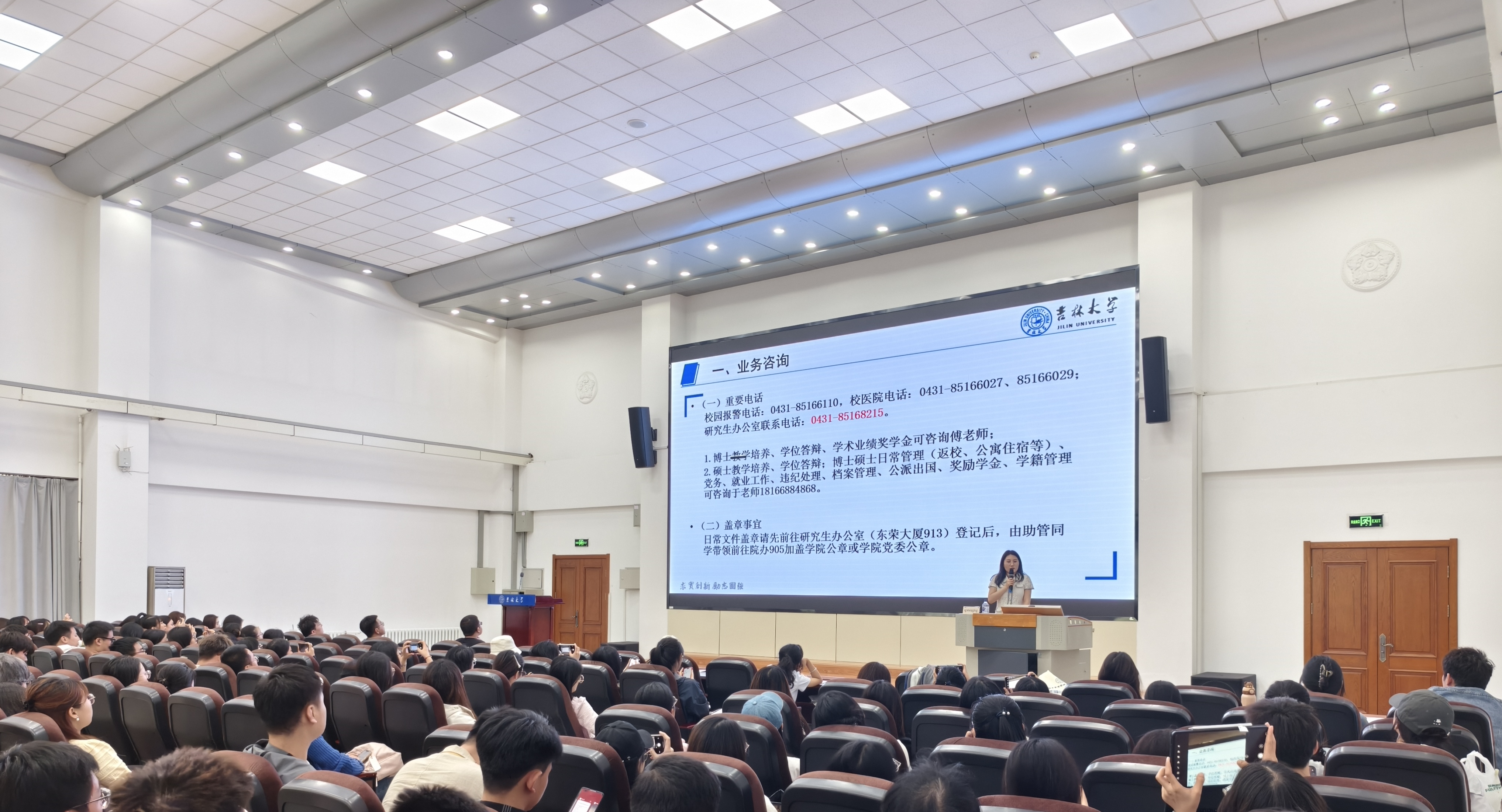 研究生辅导员于洋老师主讲,2024级全体博士硕士新生和其他年级研究生代表参加会议。
