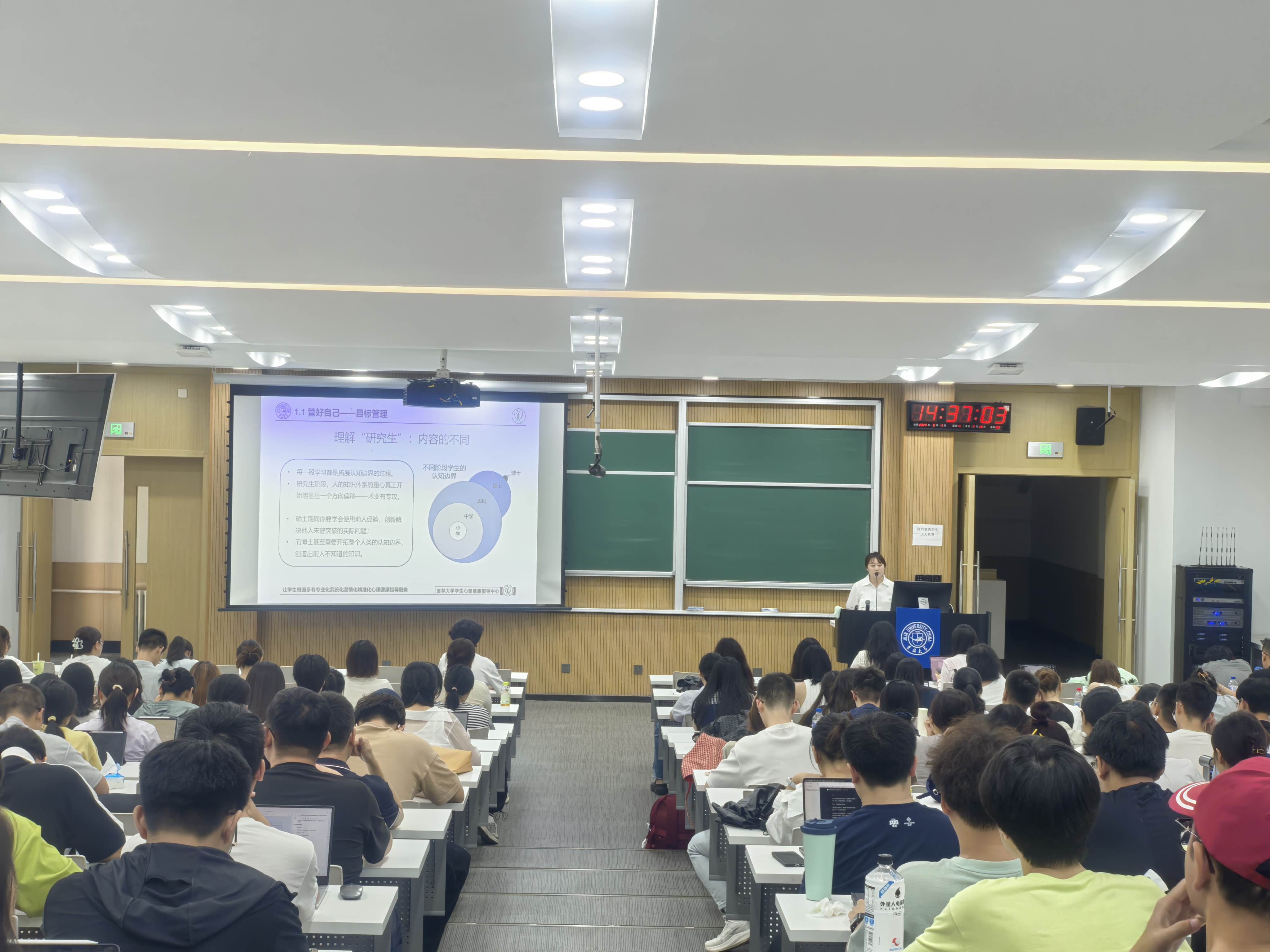 研究生辅导员于洋老师主持,2025级全体博士、硕士新生参与活动。