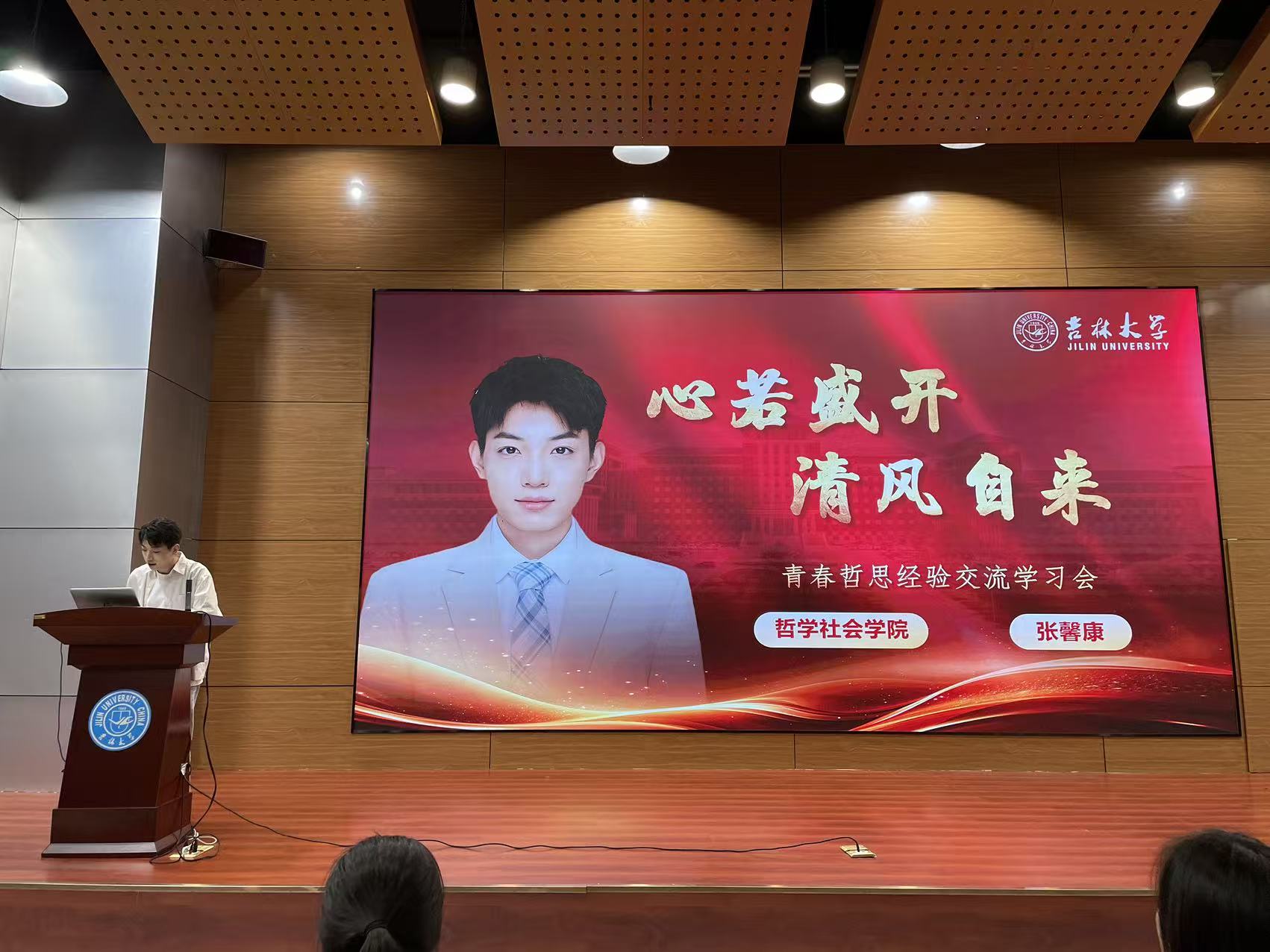 2025年度“十佳研究生”获得者、2025届硕士毕业生张馨康作经验交流分享,研究生辅导员于洋老师主持,2025级全体硕士研究生参加活动。