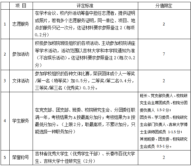 注:以上所列8条如有不符合者,思想品德项评定扣10分。